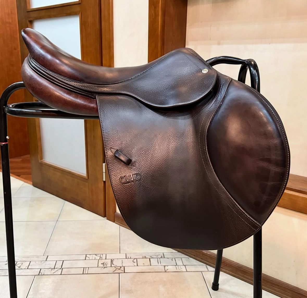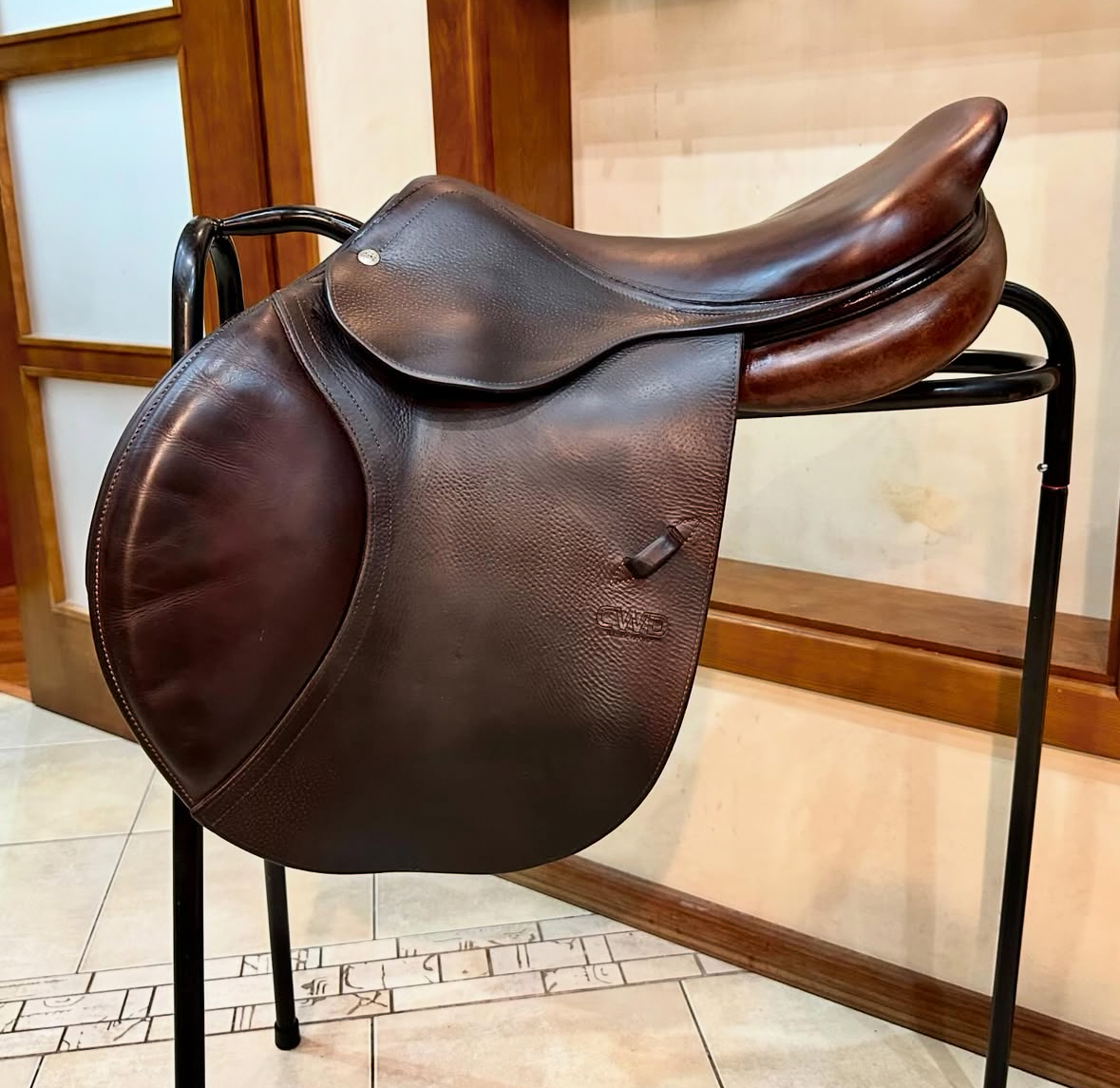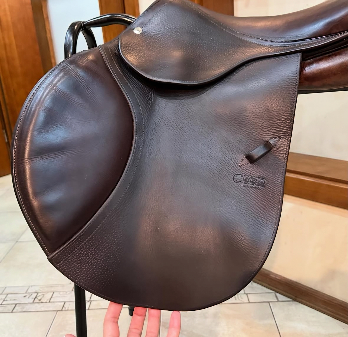 Ce modèle de selle permet au pilote d’engager plus facilement le bassin pour un équilibre parfait en chevauchant et en sautant. Modèle CWD SE02 pour un contact plus étroit avec le cheval.
