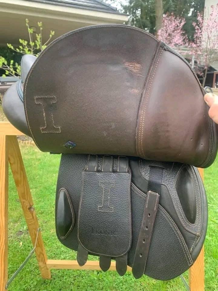 Vente en commission Selle de saut Ikonic Evolution Line marron foncé 🏇 Taille 16″, largeur moyenne (les œsophages peuvent être facilement changés dans les selles Ikonic, pour ajuster la largeur). En parfait état car elle n’a eu qu’une utilisation minimale. Livrée avec housse 😎